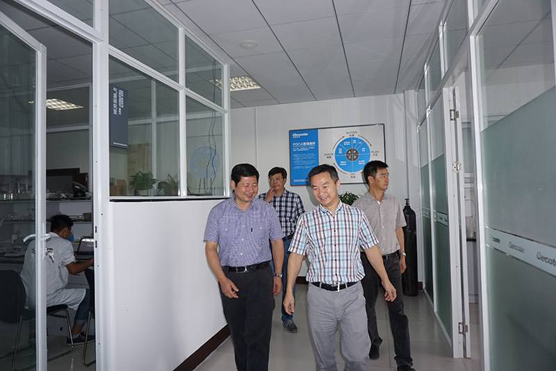 7月17日上午10時30,紹興市人大主任譚志桂及市部分領導一行,蒞臨我公司研究院進行考察。奇彩環境總經理張云保逐一介紹了研究院各部門的功能,譚主任等一行詳細了解了公司的發展和研究院的設置及功能。參觀結束后,大家一起在研究院會議室進行座談。席間譚主任熱情詢問了公司員工隊伍情況,當得知公司員工知識層次很高,碩博人員占到公司總人數的60%以上時,十分感興趣,表示紹興應營造更好的人才環境,把人才引進政策加快落實,為紹興經濟健康高速發展和健康轉型奠定人力資源基礎。同時大家還暢談很多企業發展思路方面的問題。